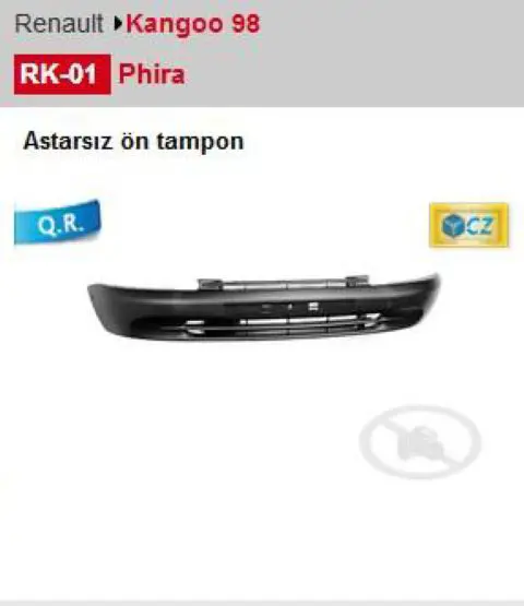 PHIRA RK01 On Tampon Kangoo 98 , 03 Kn98201, OEM: 7701694499, 5510006010900P, 4238500, 4412650, 6010900, RN9161001, 4310570, KN98201, 107190308, RN04026BA. RENAULT KANGOO modellerine uygundur.Kampanyalı ve indirimli fiyatlarla satın al.
