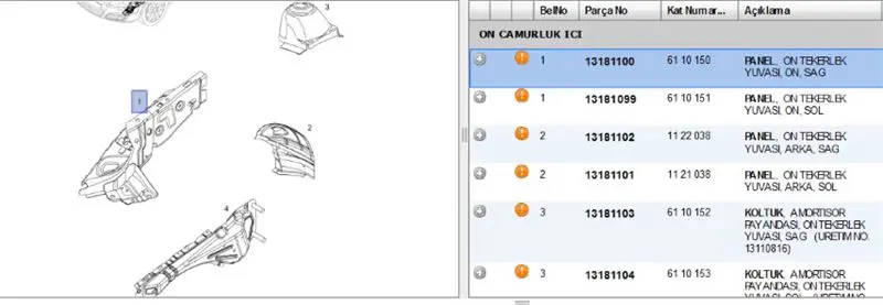 Orijinal Parça Üreticisi Bilgileri (OEMs)