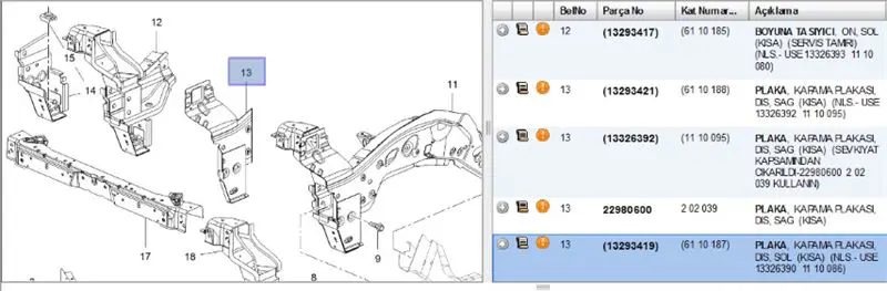 Orijinal Parça Üreticisi Bilgileri (OEMs)