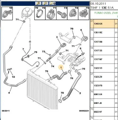 PSA 1343.KX Radyatör Üst Hortum 1343KX, 1343HT, 1343GK, 1343HF, 1343HFSK, 1343KXSK, 1351WN, 1343FK, 1343FE