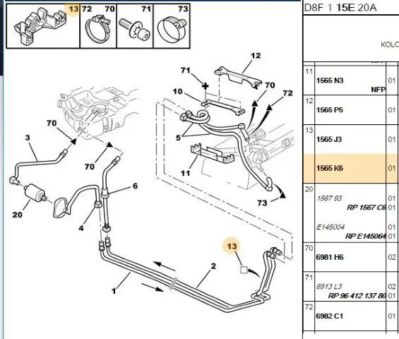 | PEUGEOT 206+ 1.4 i TU3AE5 | 09.2010-06.2013 | 73 | Hatchback |