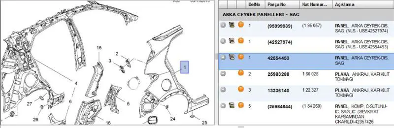 PSA 42554453 Çamurluk Arka Sağ, OEM: 195057, 42527974, 42554453, 95999939. MOKKA modellerine uygundur.Kampanyalı ve indirimli fiyatlarla satın al.