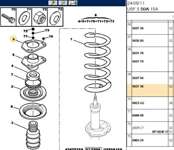 PSA 5037.36 Amortisör Üst Tablası, OEM: 503736. PEUGEOT 309 II modellerine uygundur.Kampanyalı ve indirimli fiyatlarla satın al.