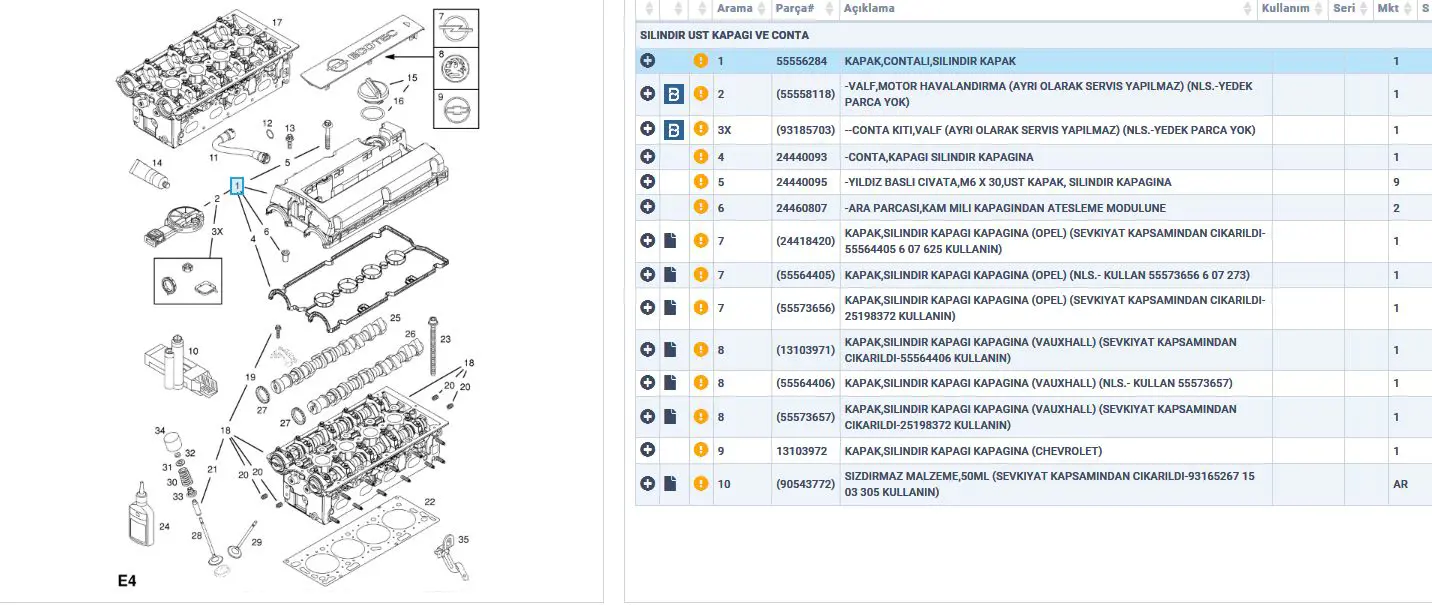 Orijinal Parça Üreticisi Bilgileri (OEMs)