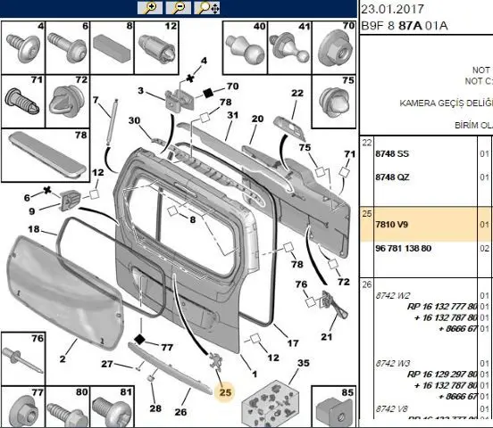 PSA 7810.V9 Bagaj Kapak Aslan Amblemi 7810V9
