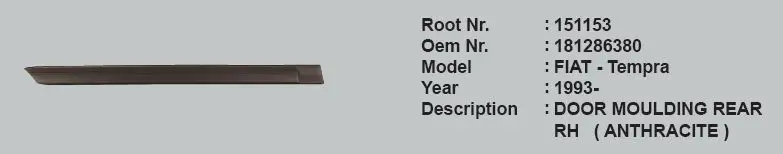 ROOT 151153 Kapı Çıtası Arka Sağ 181286380 Tempra, OEM: 181286380. FIAT modellerine uygundur.Kampanyalı ve indirimli fiyatlarla satın al.
