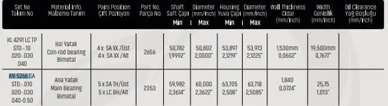 SAHIN AN5266SA020 Ana Yatak 0.20 Fıat Doblo 1.9 Jtd Opel Vectra 1.9 Hdı Insıgnıa A A20dth 223.A7 MB5412SI050, AN5266SA020, H10955050, H10955050mm