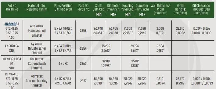 SAHIN AN5268SA001 Ana Yatak Std Mazda B2500 Ford Ranger 2.5d 2.5 Tdcı Turbosuz An5268sastd MB5312AM, WLY111SG0, WLY111SH0, MS2016ASTD, WLY111SHX, AEM510022STD, WLY111SGO, MS201600, MS2016A, MS2016