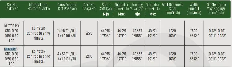 SAHIN KL4806LF001SP Kol Yatak Std Peugeot Ford 1.4 Hdı Tdcı Dv4 Supputer Kl44806lcstd 0606T0
