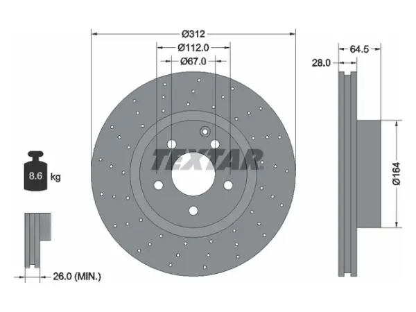 TEXTAR 92120100 Fren Diski R230 Ön Havalı Delikli SL350