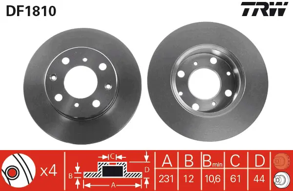 TRW DF1810 Fren Diski Ön Cıvıc I 1983-1987-Cıvıc Iıı 1983-1987-Cıvıc Iv 1987-1991-Crx I 1983-1987 45251SB2732HS, GBD90827