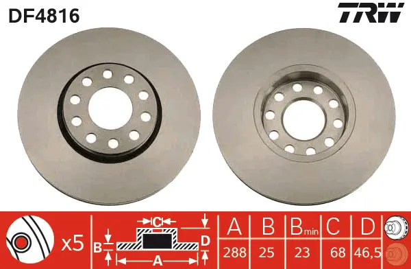 TRW DF4816 Fren Diski Ön Exeo Passat B5 00> - 100 90> A4 A6 97> - Exeo 09> - Superb I 01> 4B0615301B