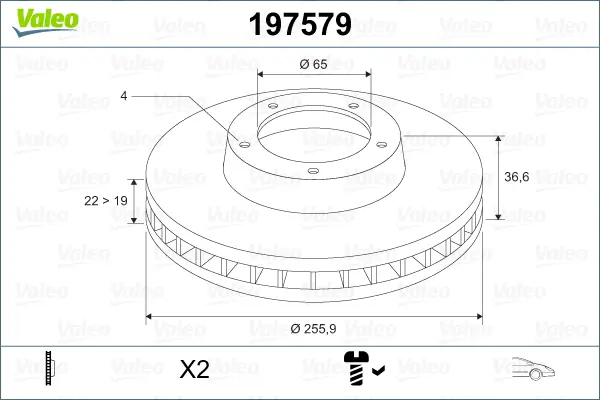 Valeo 197579 Fren Diski Ön X2 Seat Mii 2011 Skoda Citigo 2011 Volkswagen Up 2011 1S0615301L