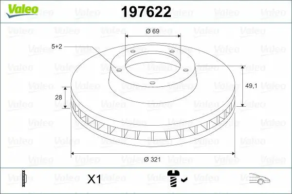 Valeo 197622 Fren Diski Ön X1 Hyundaı Santa Fe 06 09 Kıa Sorento 15 517122B700