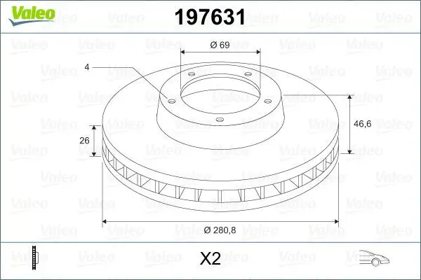 Valeo 197631 Fren Dıskı On Smart Forfour (454) 05>06 , Mıtsubıshı Colt 1.5 05>12 4605A180, 4544210312, A4544210312, DF4311, MB669761
