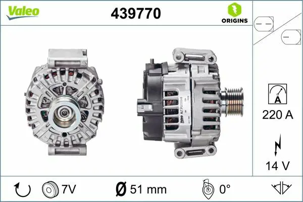 Valeo 439770 Alternator (14v 220a) X164 09>12 C219 05>10 W212 09>15 W221 06>13 W251 06>14 6281500060, 6421500860, A6281500060, A6421500860, 9067400, 131546402