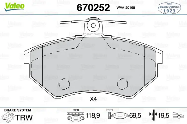 Valeo 670252 Dısk Fren Balatası (Ön) Audı 80 1.6-2.0-2.3-2.6-1.9d 06-91-07-96 Audı Cabrıolet 1.8-2.0-2.3-2.6-1.9d 357698151B, 8A0698151C, 8D0698151L