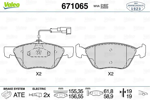 Valeo 671065 Ön Balata 166 03-07 Lancıa Kappa 96-01 77365938, 9951101, 9949412, 9948092, 77362228, 9951030, 8660004745, 8671016725, 9949132, 77362254