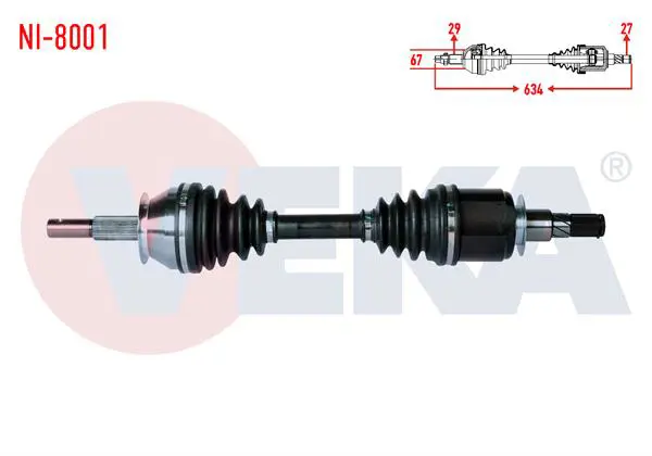 VEKA NI-8001 Komple Aks Sol-Sağ On Uzunluk 634mm Nıssan Navara (D40) 2.5 Dcı 4x4 A-T-M-T 2005-2015 391005X20A, 39100EB300, 39100EB310, 39204EB31A, 39100EA000