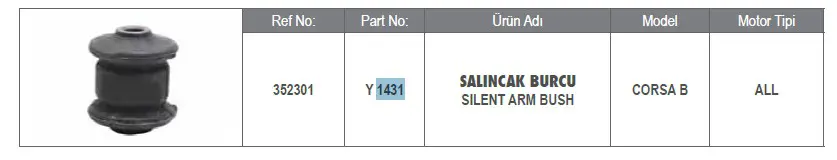 YTT 1431 Salincak Burcu Corsa B, OEM: 352301, 1215125, 880352301, 2105, 1605602, VKDS335021, 2008, G9590, 52002308, 850024803. Kampanyalı ve indirimli fiyatlarla satın al.
